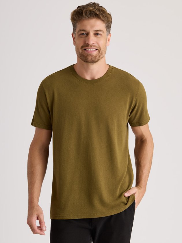 Com seu toque de crepe, ela emana uma sofisticação sutil, fazendo da camiseta de crepe um novo item indispensável para seu guarda-roupa, combinando simplicidade e elegância de forma única.