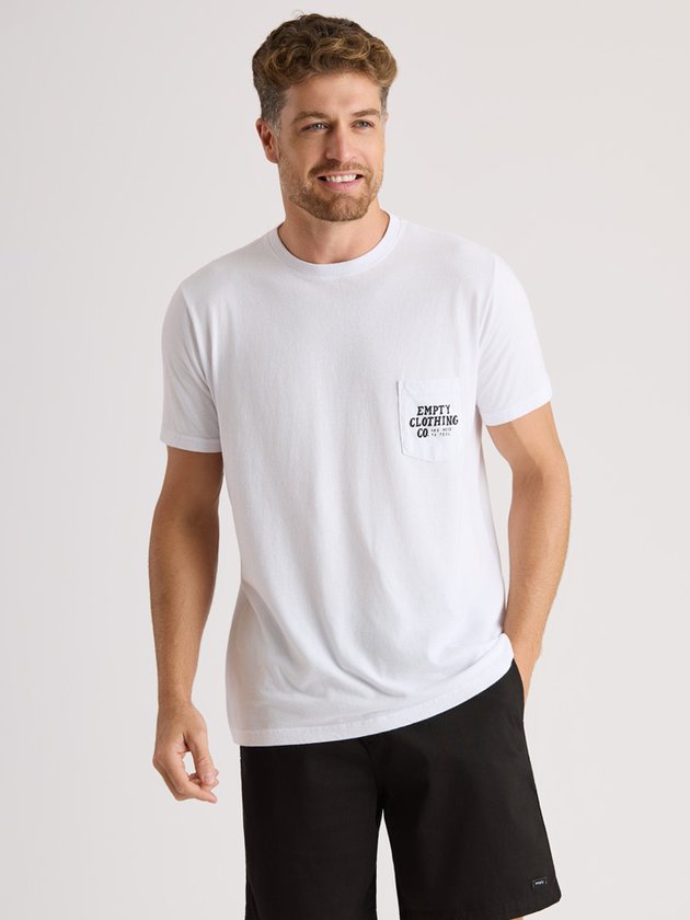 Camiseta com estampa no bolso, estilosa e diferente!